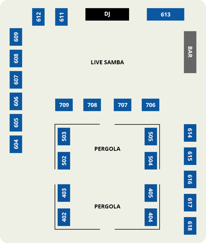 Samba Play is an exclusive nightlife experience that redefines samba for a global audience. A live samba band performs world hits in authentic samba rhythm, complemented by house and Brazilian funk DJs to create a dynamic, elegant atmosphere. Designed for a select and stylish crowd, Samba Play is where rhythm meets sophistication.